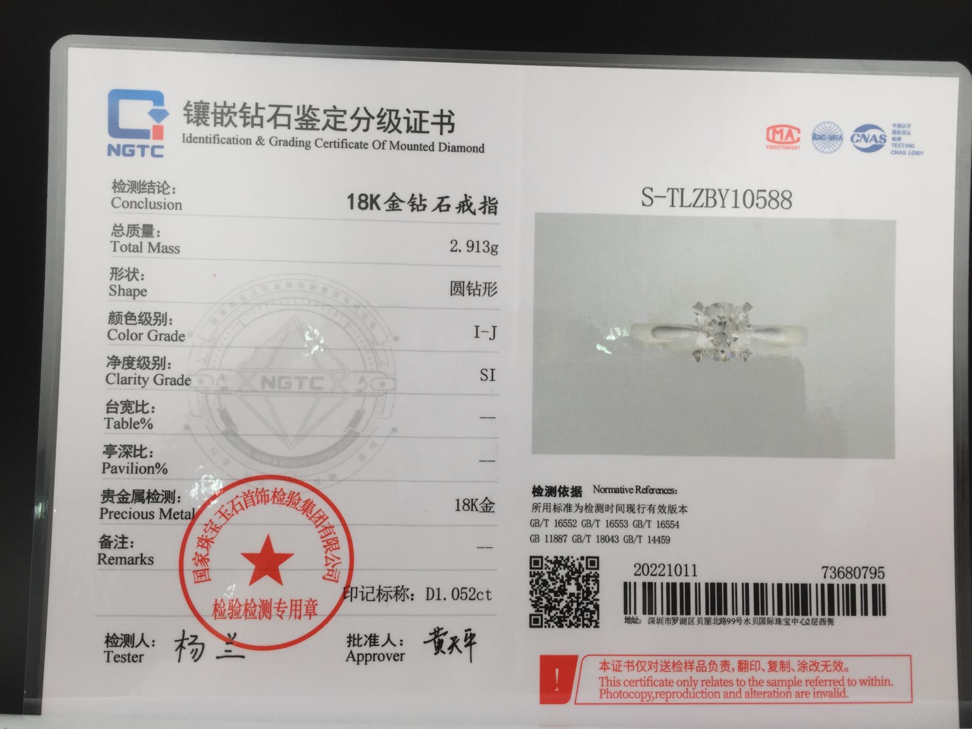 主钻1.052克拉IJ色SI净度圆形钻 特价3.17W国检NGTC060588