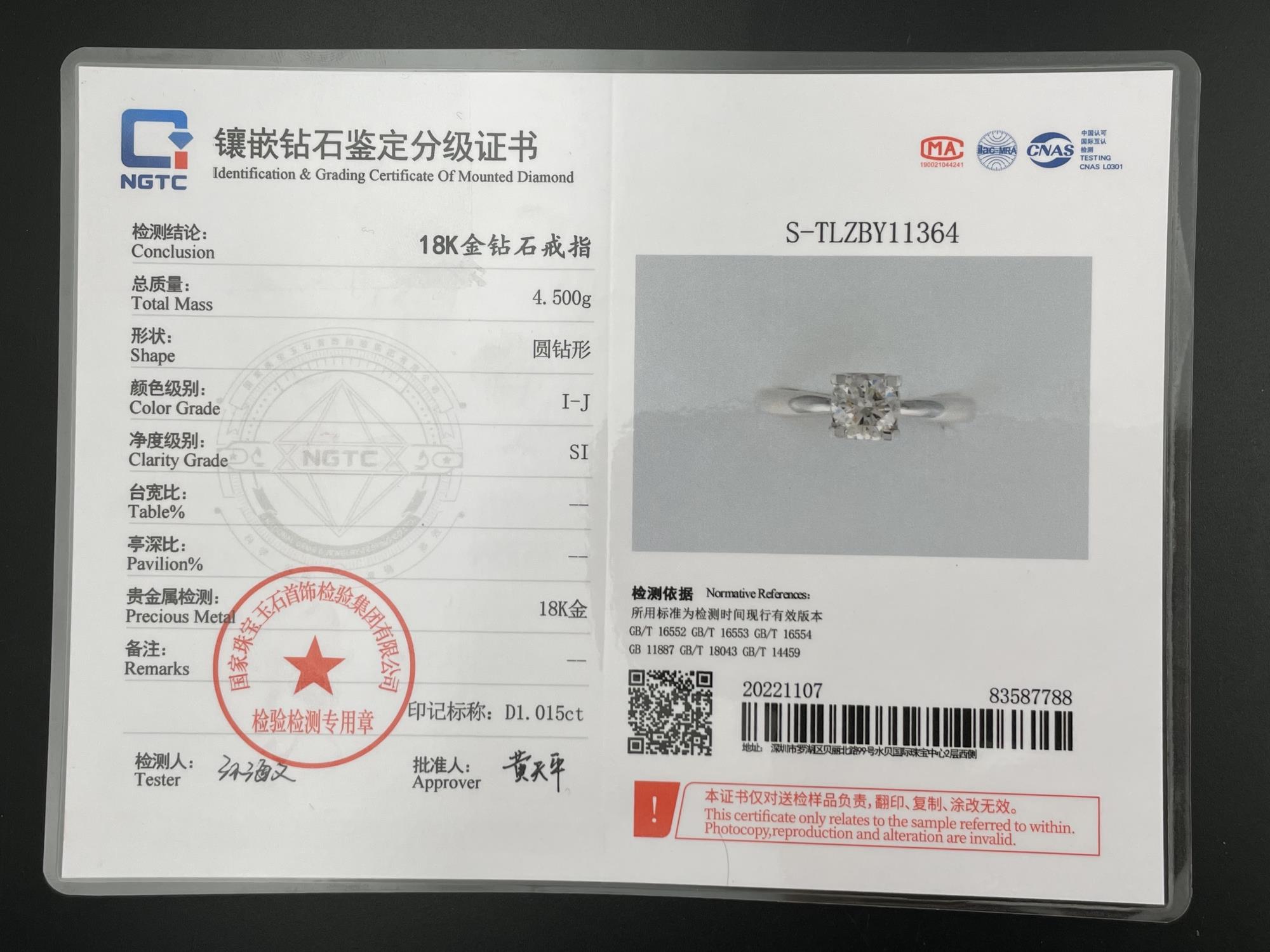 主钻1.015克拉IJ色SI净度圆形钻 特价4W国检NGTC111364