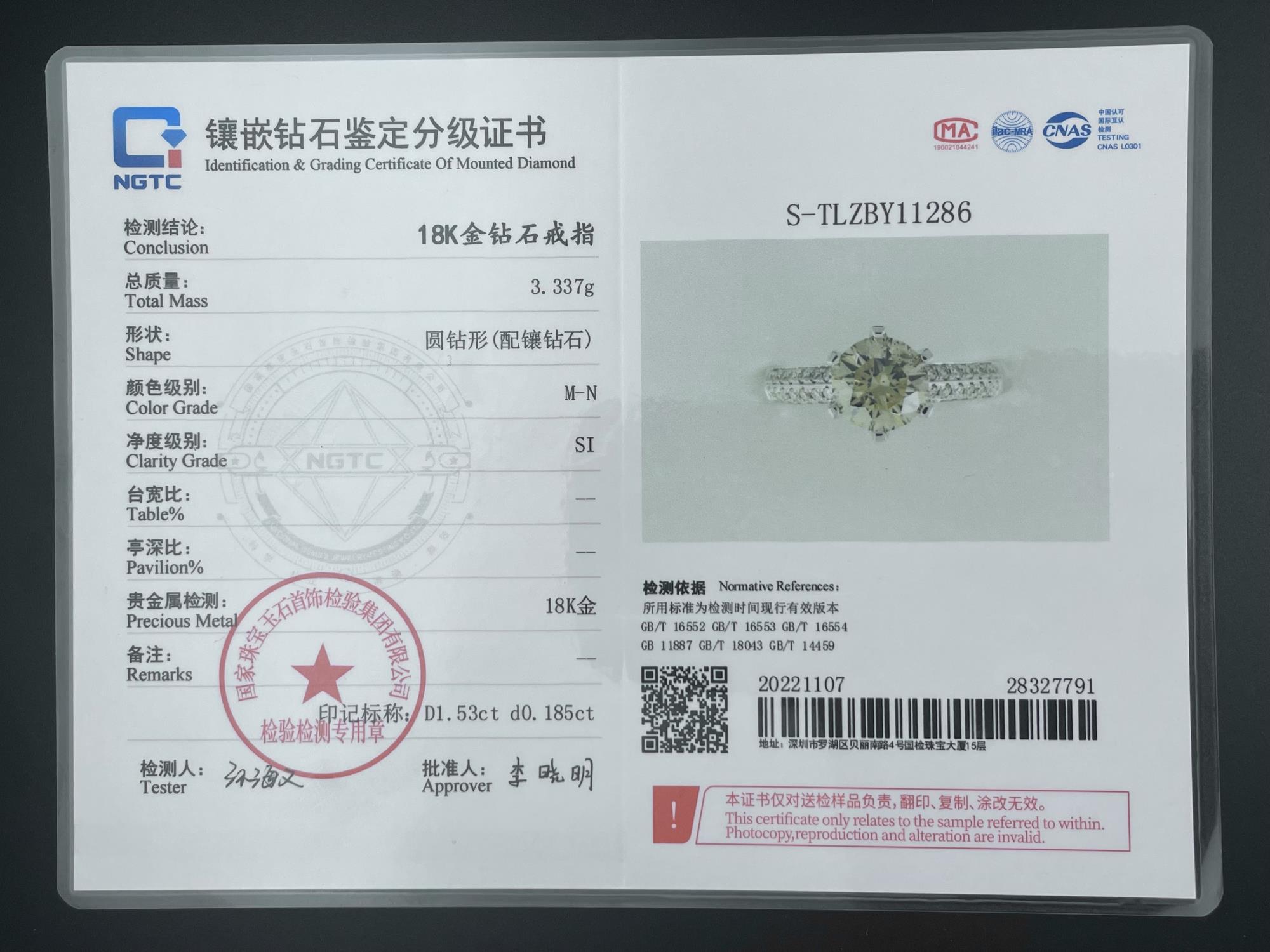 主钻1.53克拉MN色SI净度圆形钻 特价3.84W国检NGTC611286