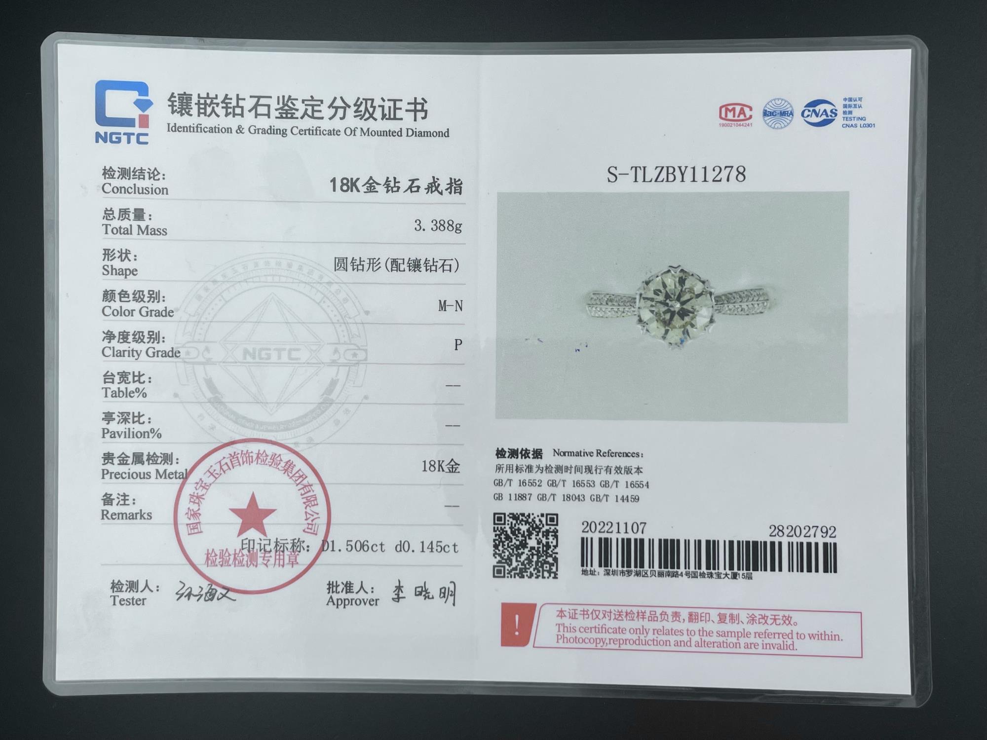 主钻1.506克拉MN色P净度圆形钻 特价4.5W国检NGTC631278