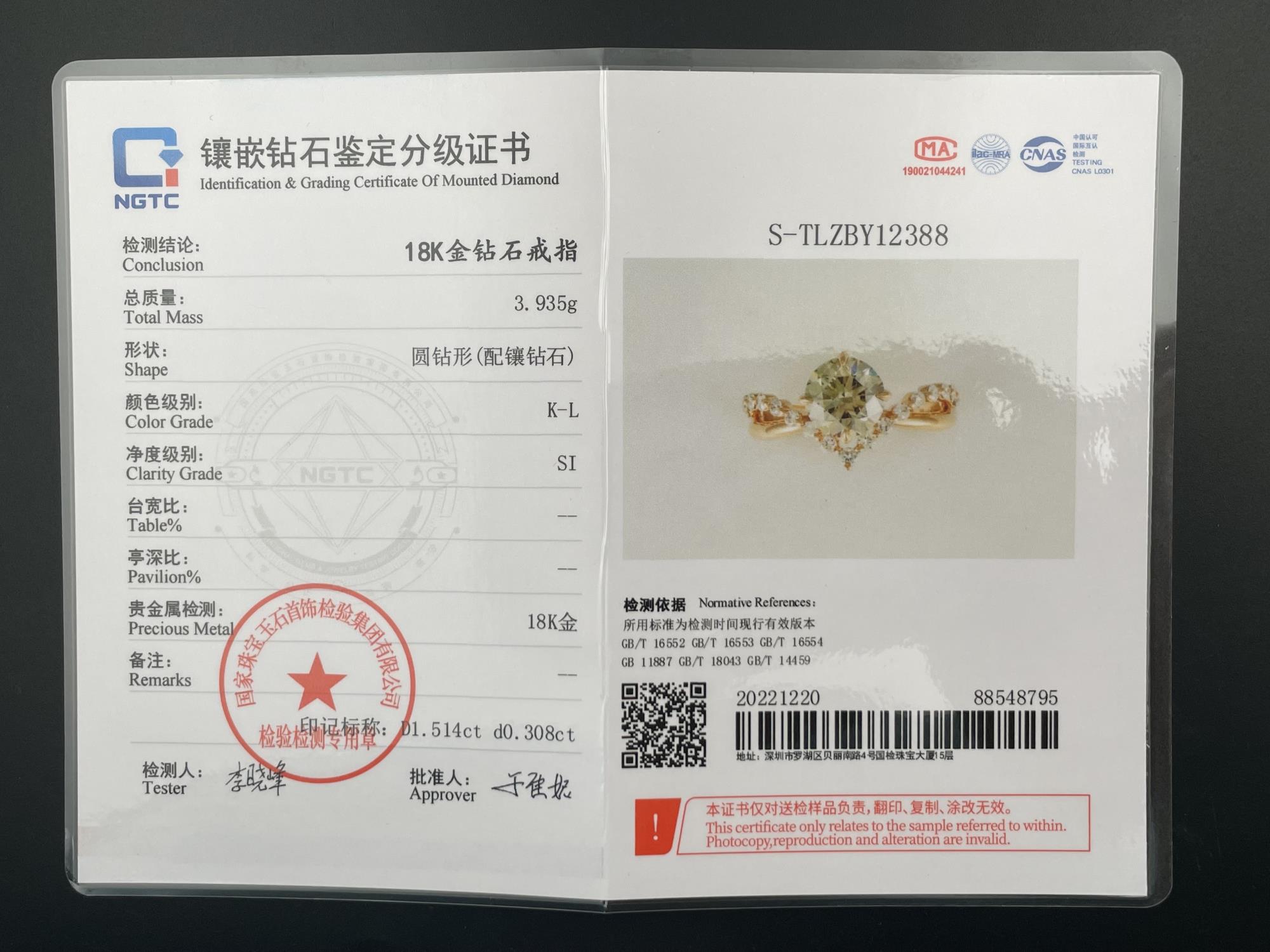 主钻1.514克拉KL色SI净度圆形钻 特价5W国检NGTC732388