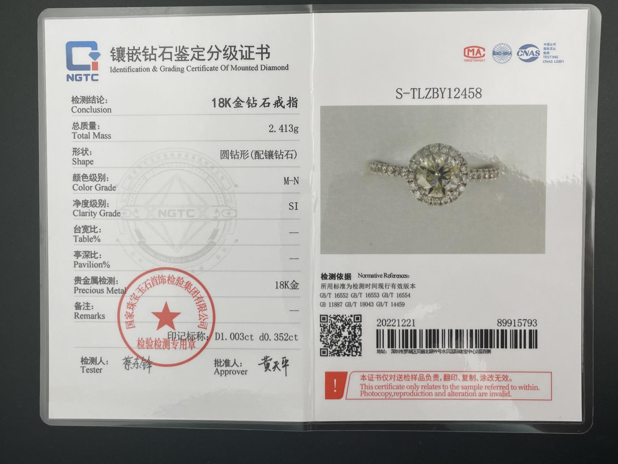 主钻1.003克拉MN色SI净度圆形钻 特价2.07W国检NGTC582458