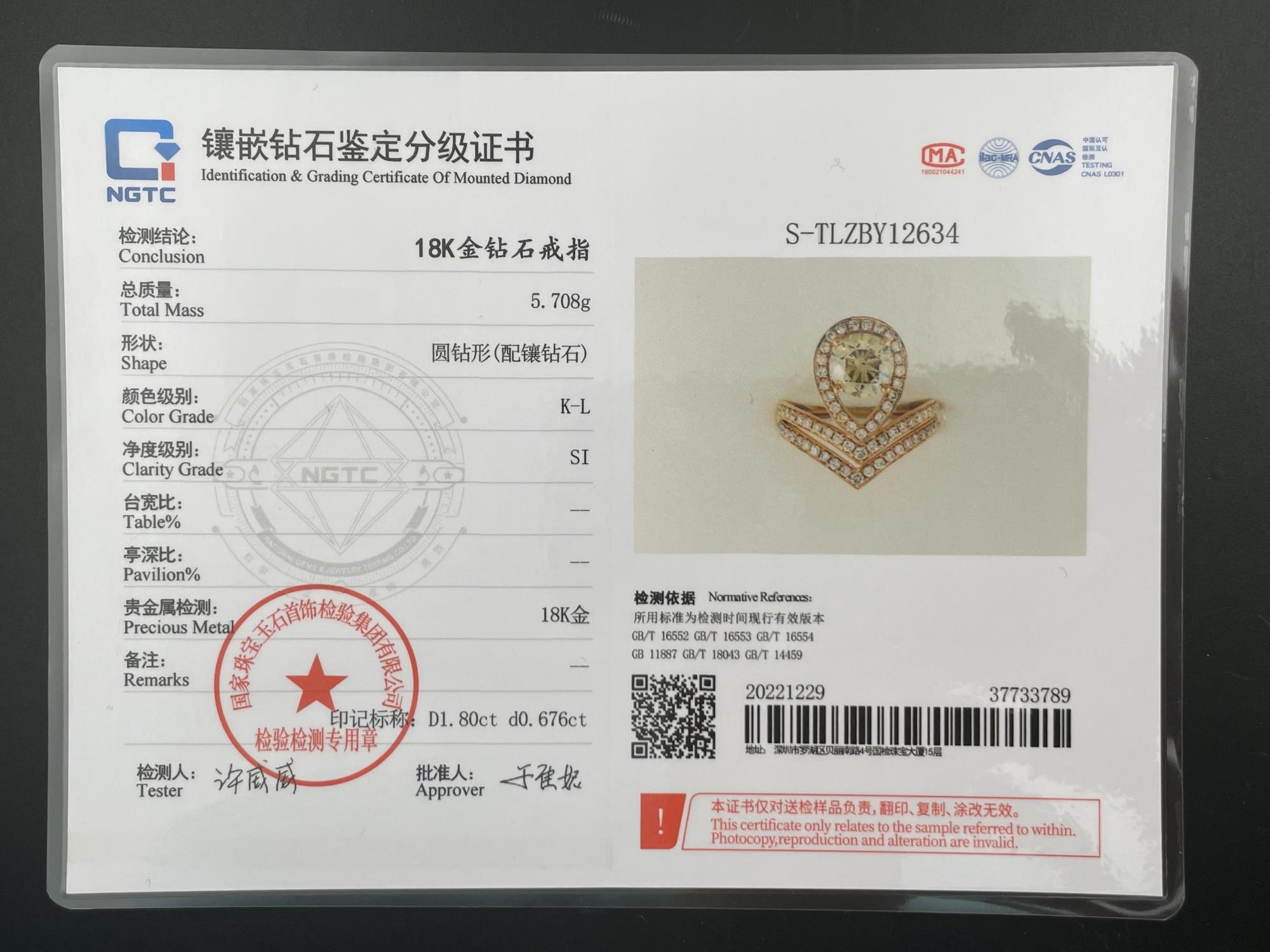 主钻1.8克拉KL色SI净度圆形钻 特价6.34W国检NGTC752634