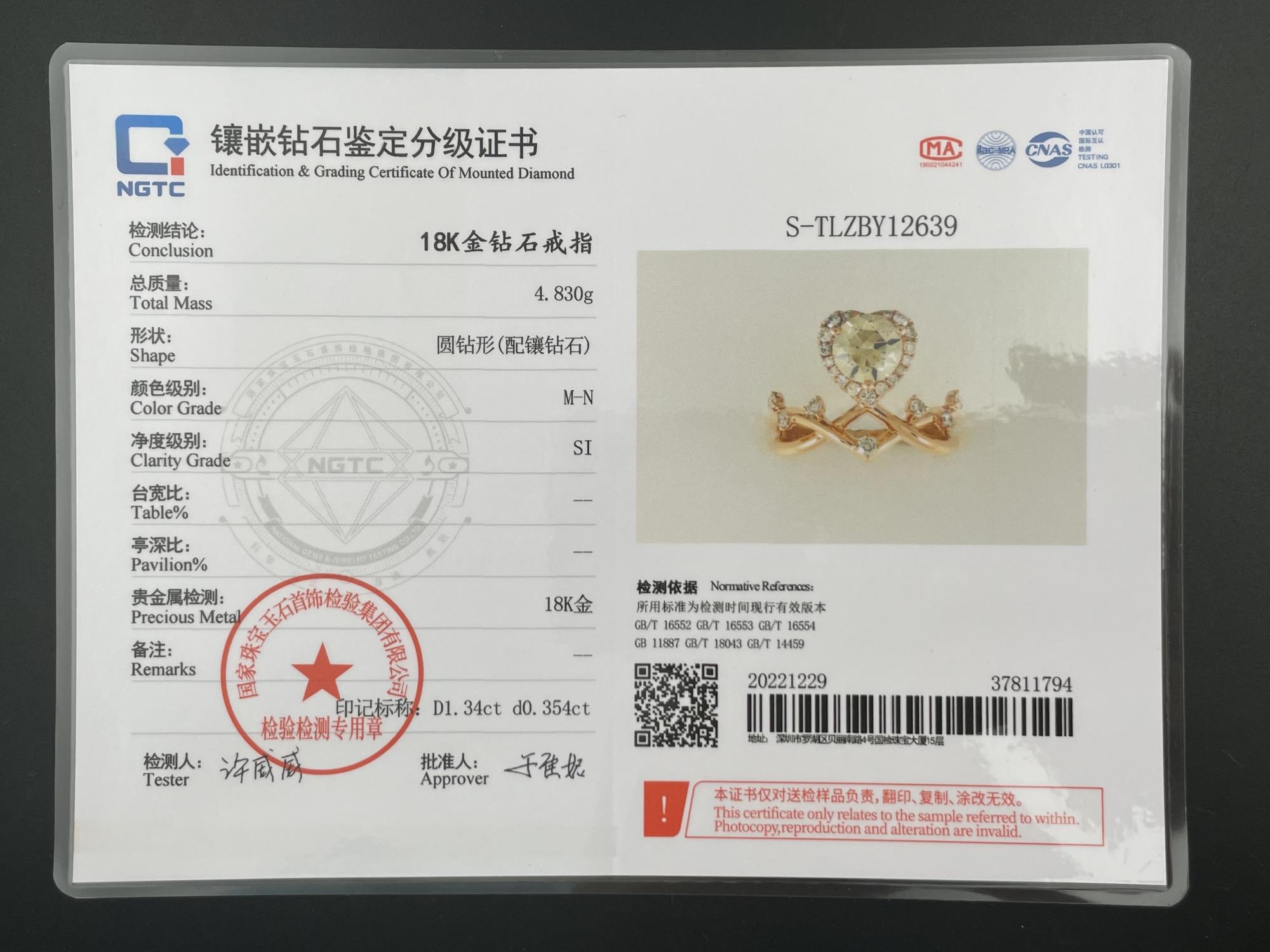 主钻1.34克拉MN色SI净度圆形钻 特价3W国检NGTC762639