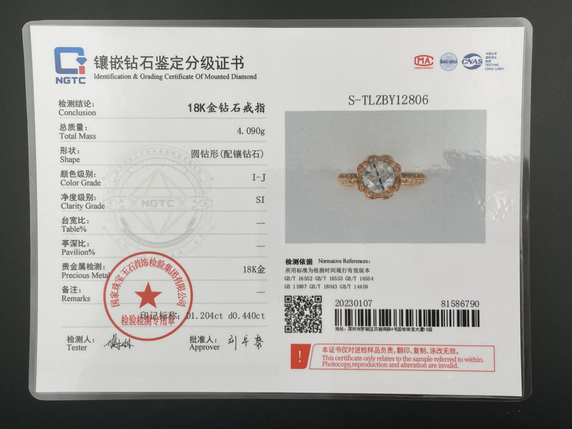 主钻1.204克拉IJ色SI净度圆形钻 特价5.17W国检NGTC772806