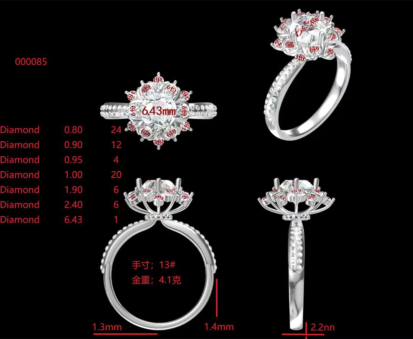 18K金有副钻托