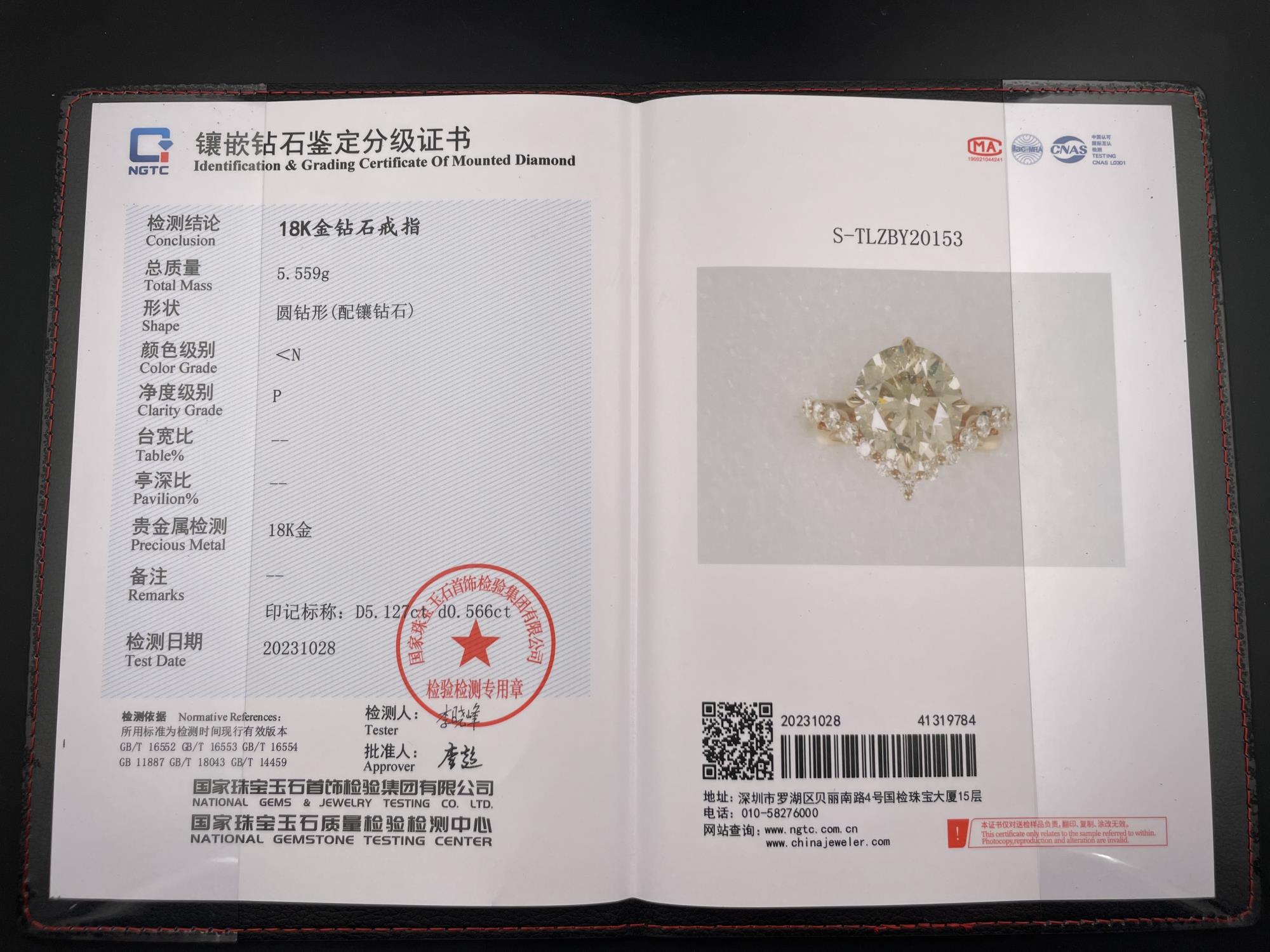 主钻5.127克拉小N色P净度圆形钻 特价16.64W国检NGTC730153