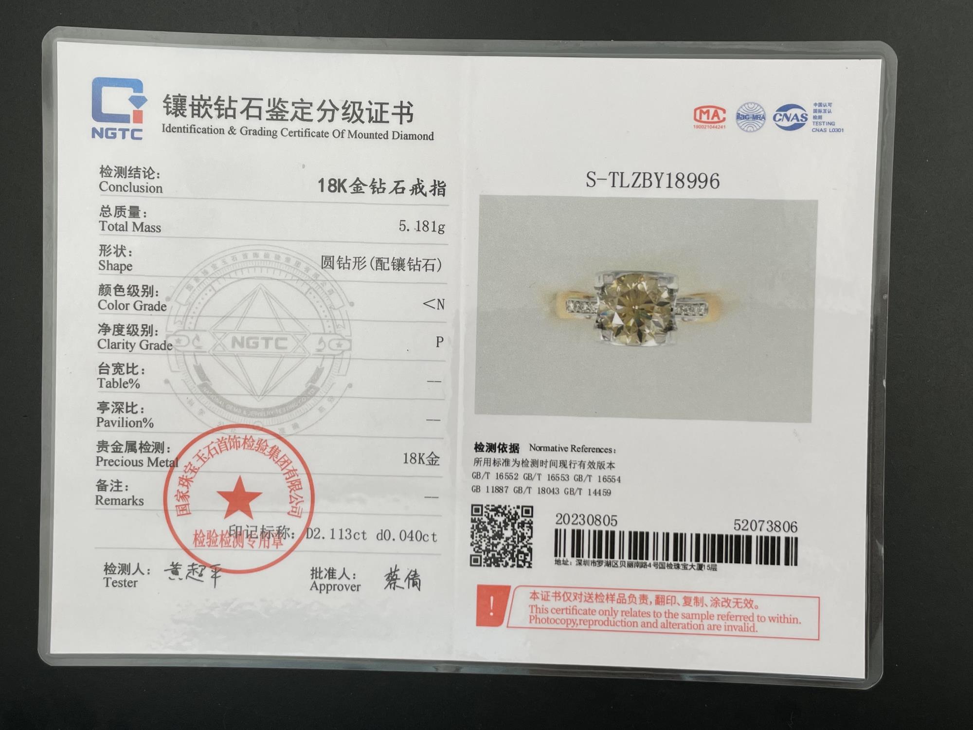 主钻2.113克拉小N色P净度圆形钻 特价5W国检NGTC668996