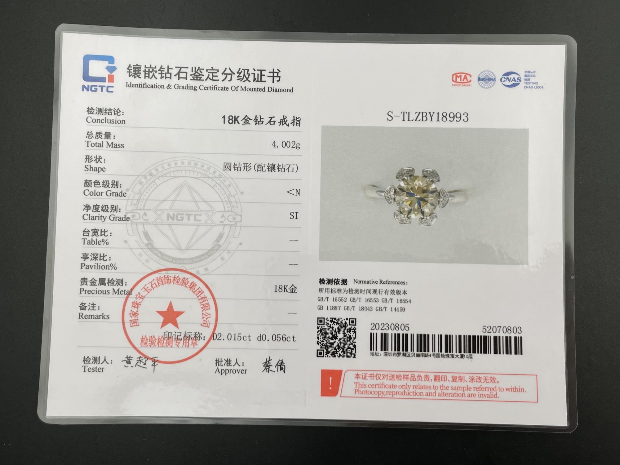 主钻2.015克拉小N色SI净度圆形钻 特价5.5W国检NGTC888993