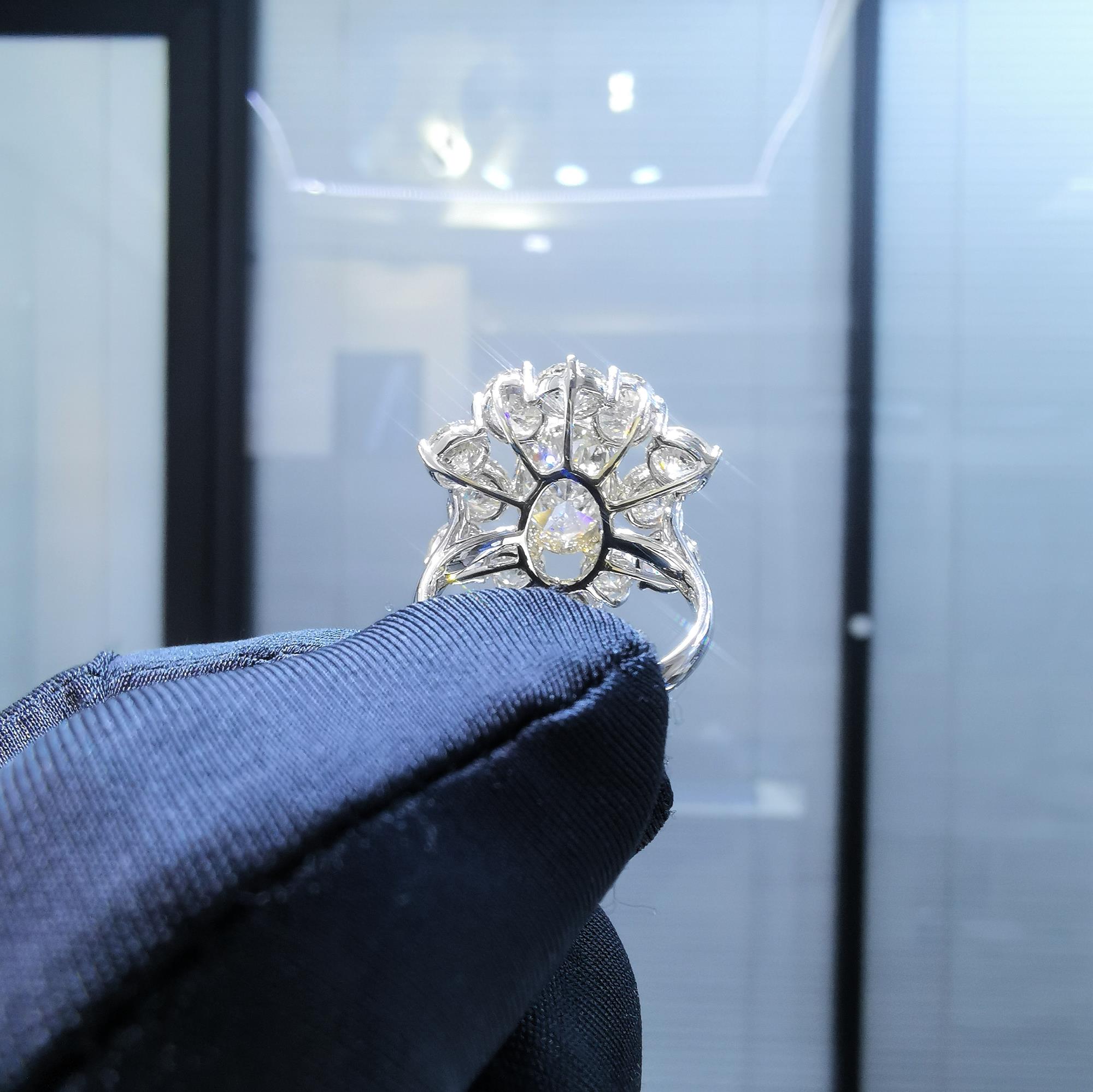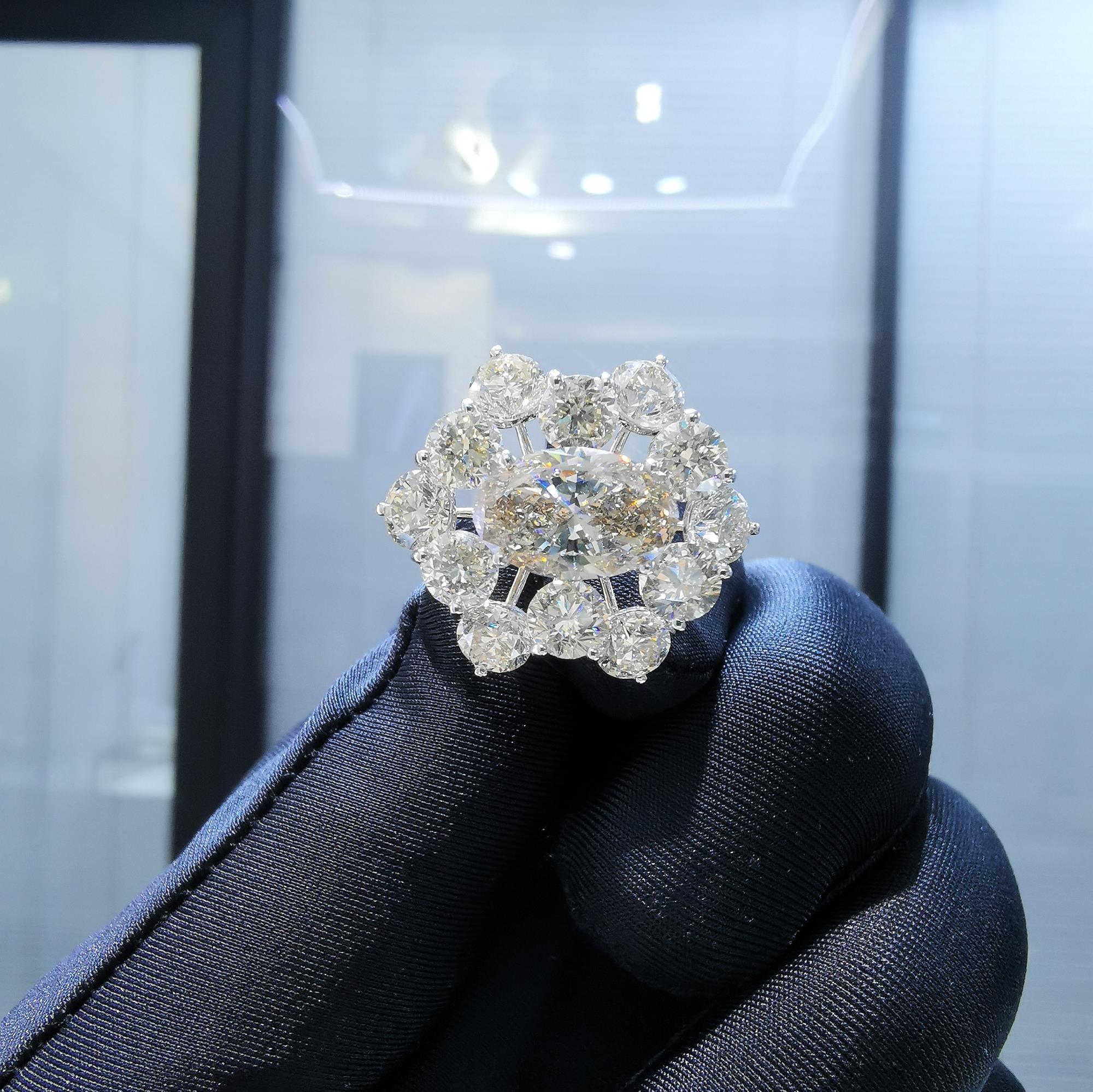 18K白金,主钻石3克拉副钻石0.5克拉每粒