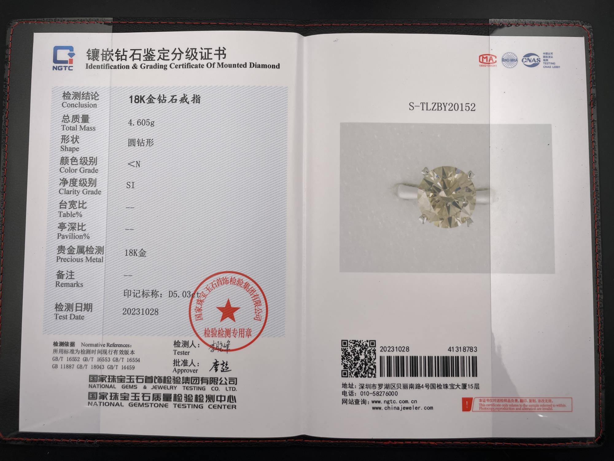 主钻5.03克拉小N色SI净度圆形钻 特价23W国检NGTC060152