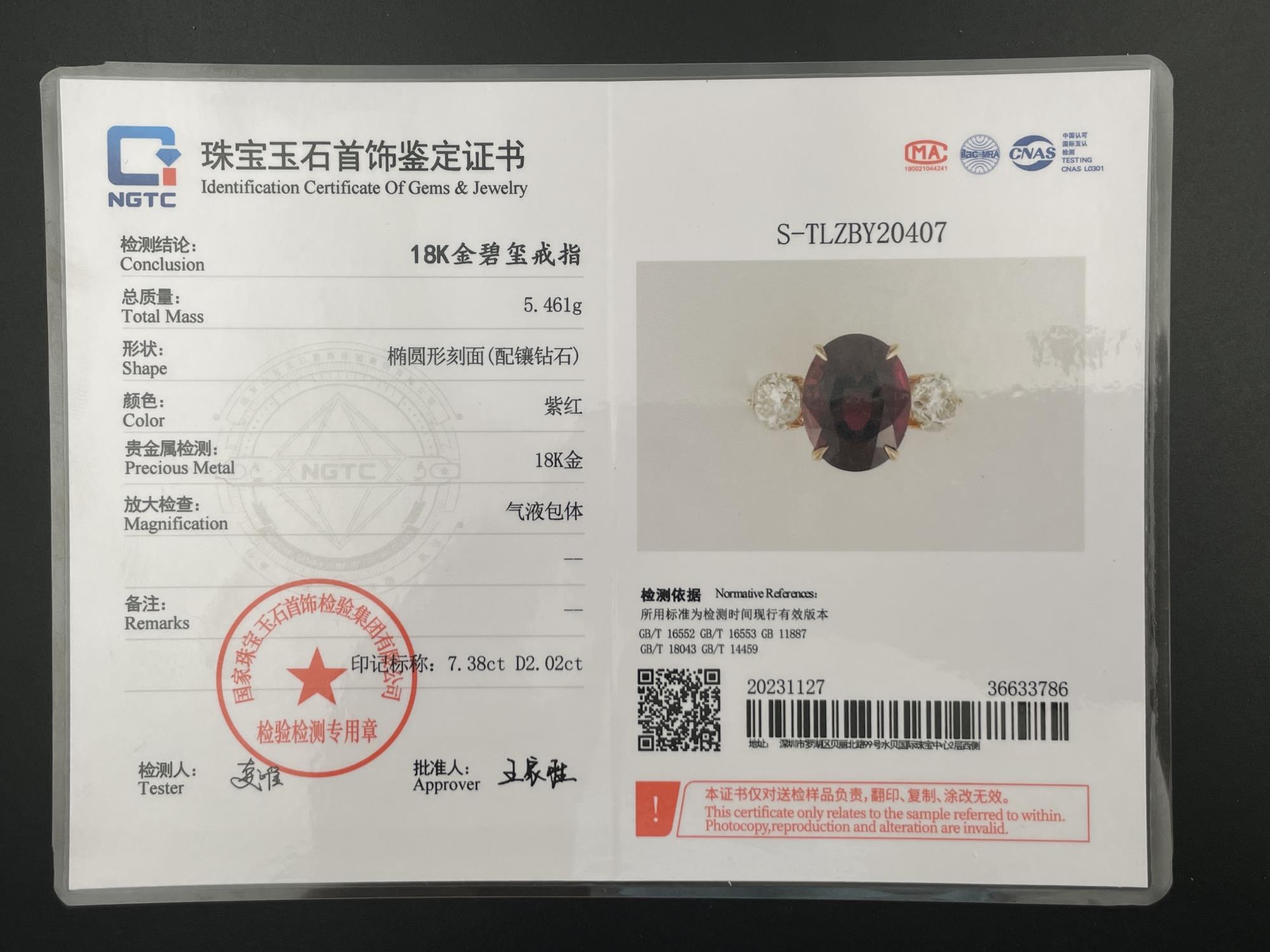 主石:椭圆形碧玺7.38克拉 副石:钻石2.02克拉 特价9.84W国检NGTC651507