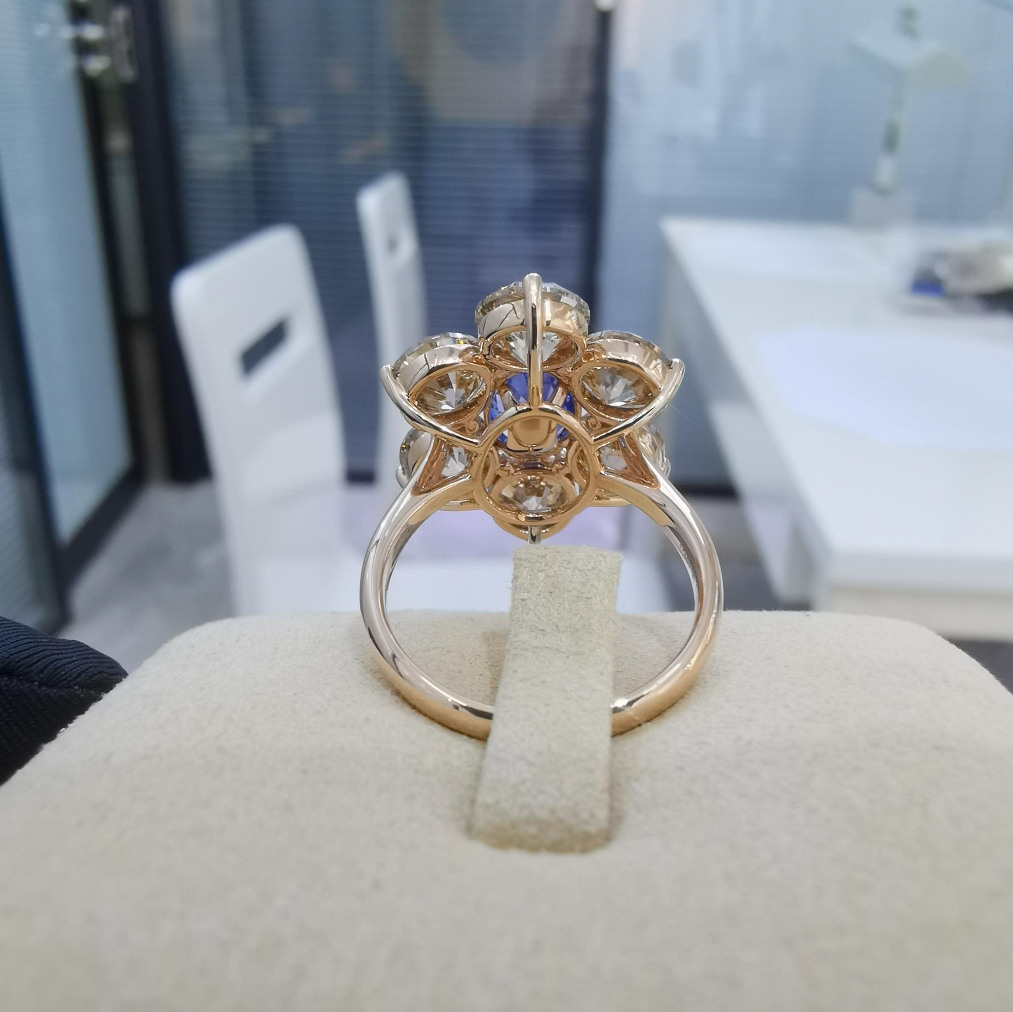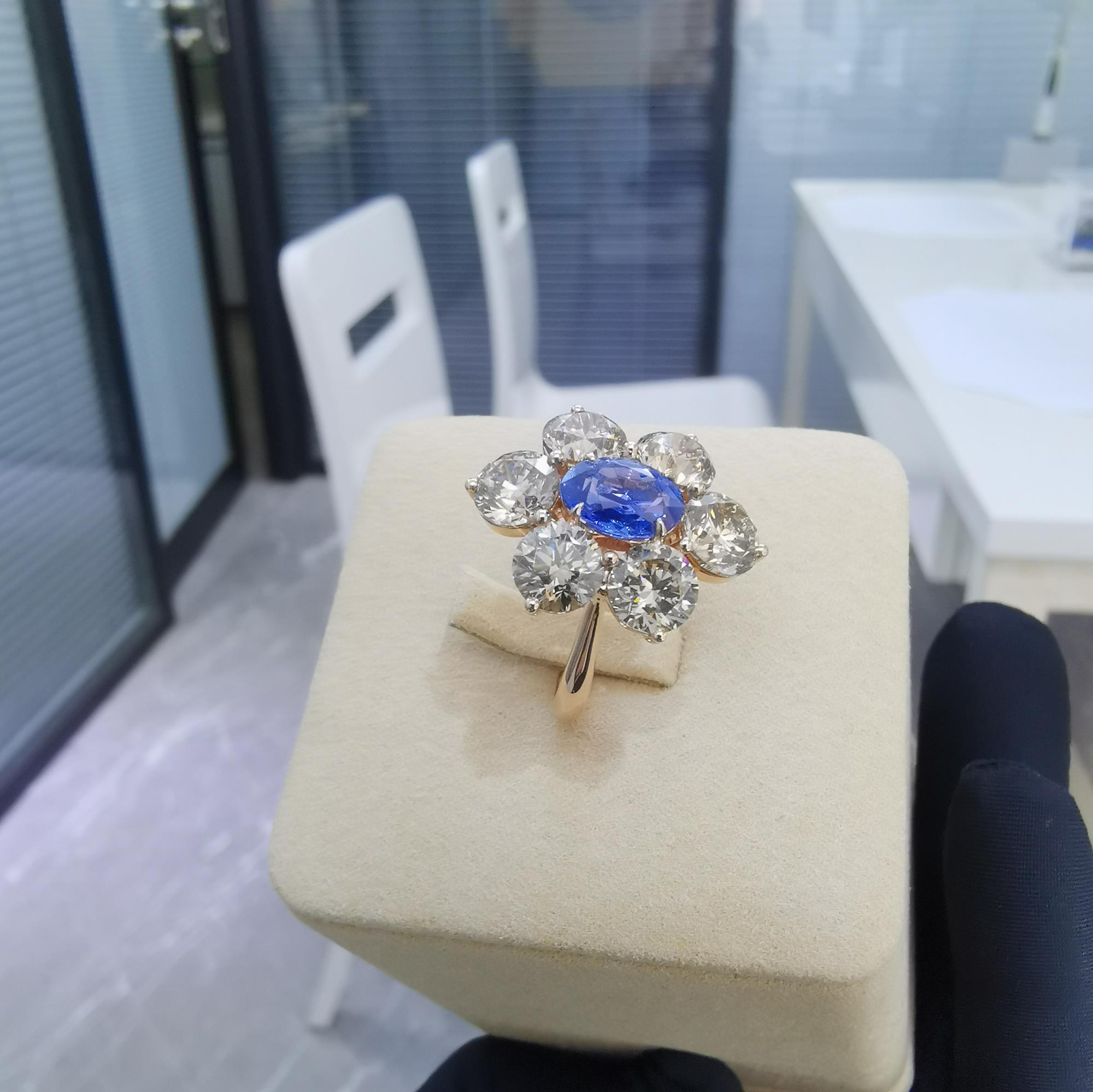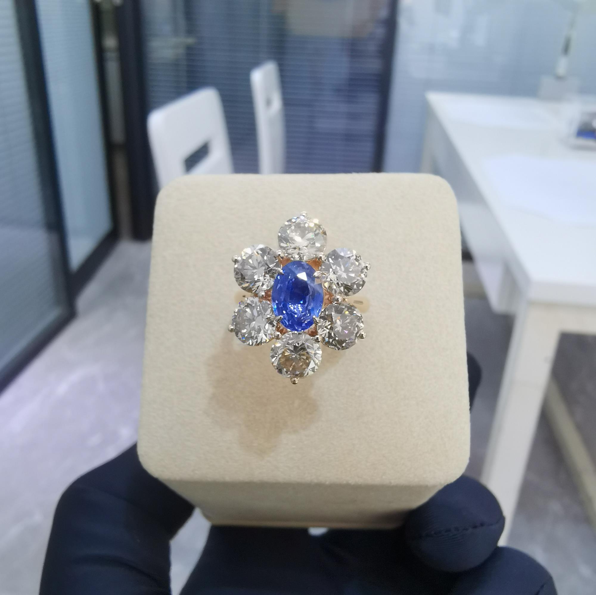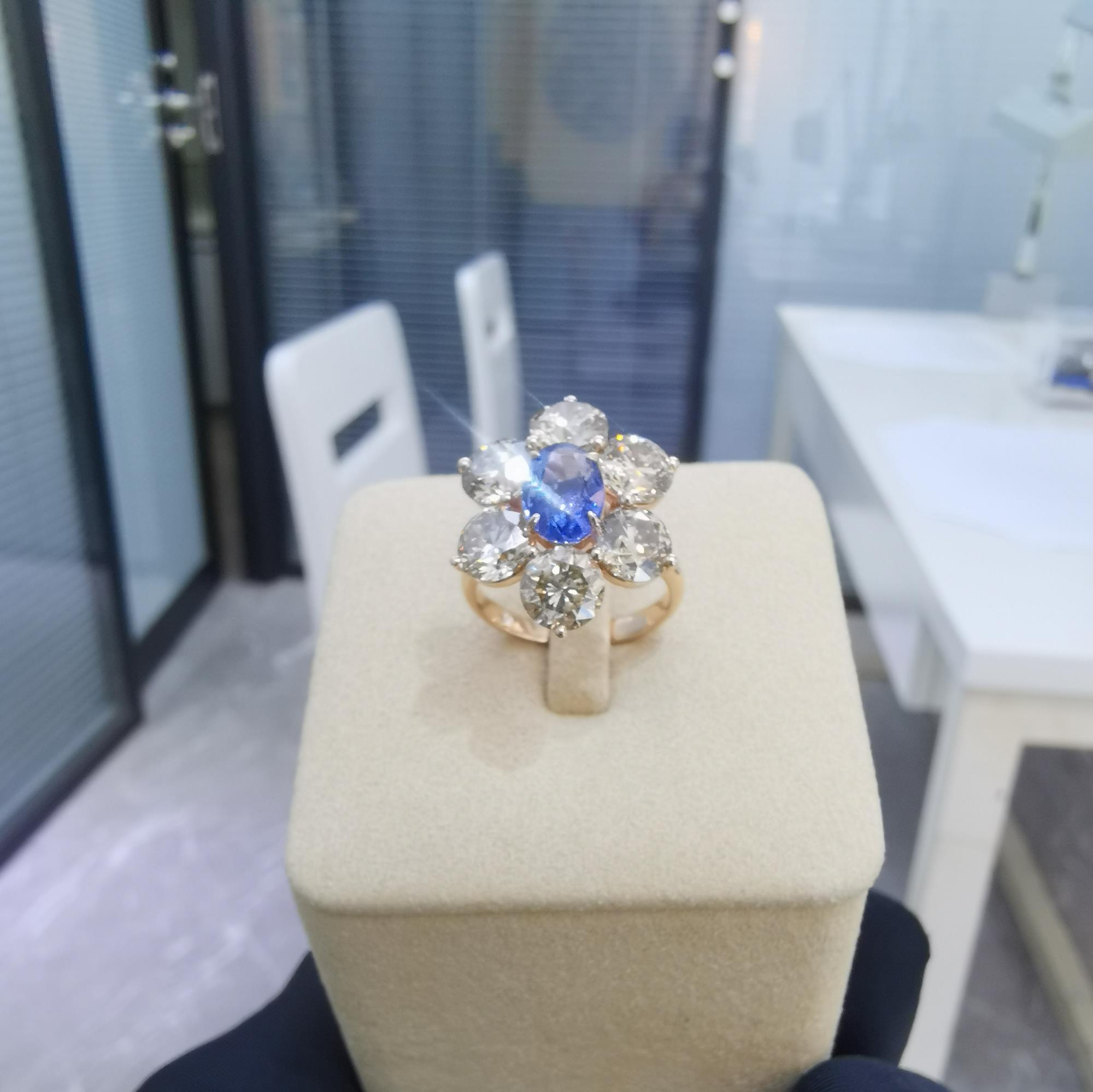 主石:椭圆形无烧蓝宝石1.89克拉 副石:钻石6.193克拉