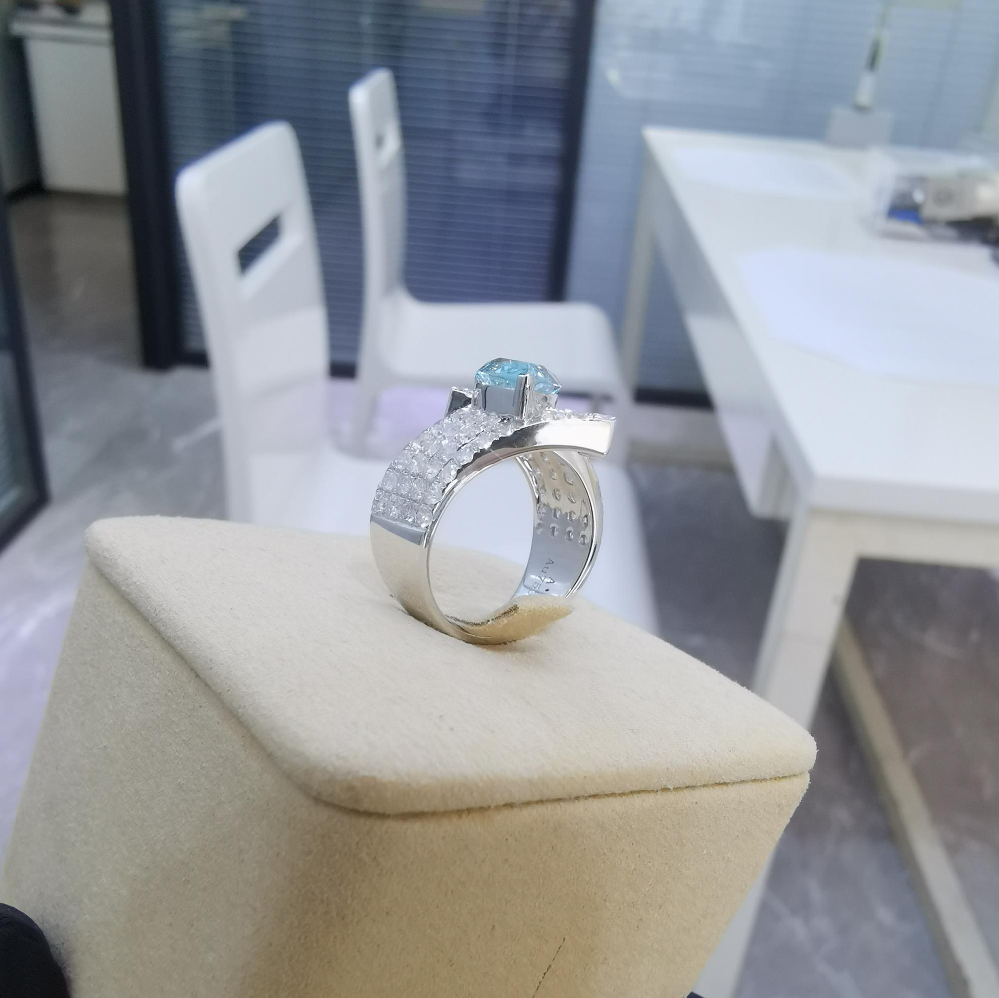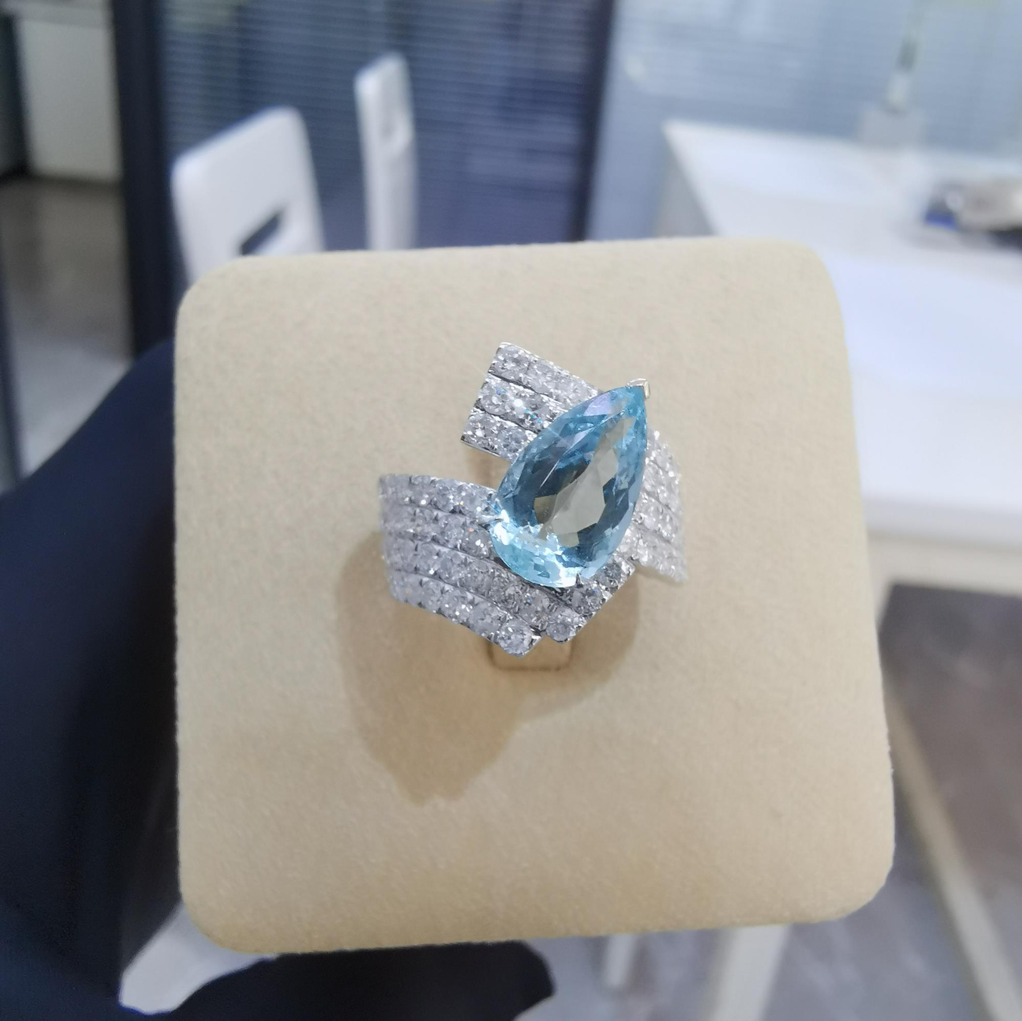 主石:水滴形海蓝宝石2.47克拉 副石:钻石1.738克拉