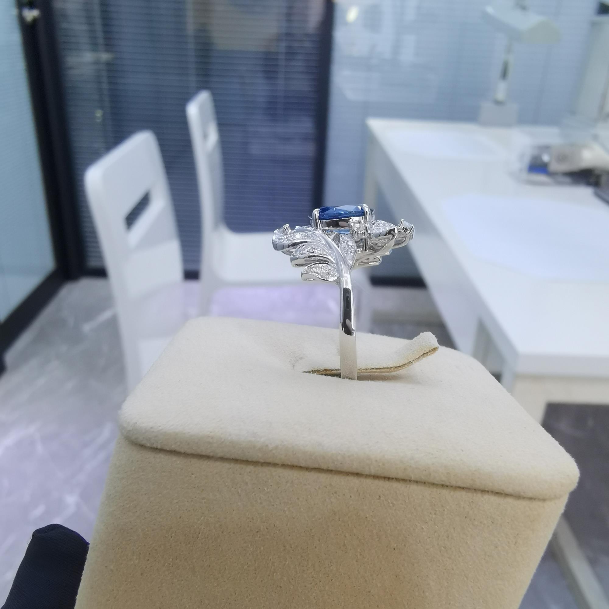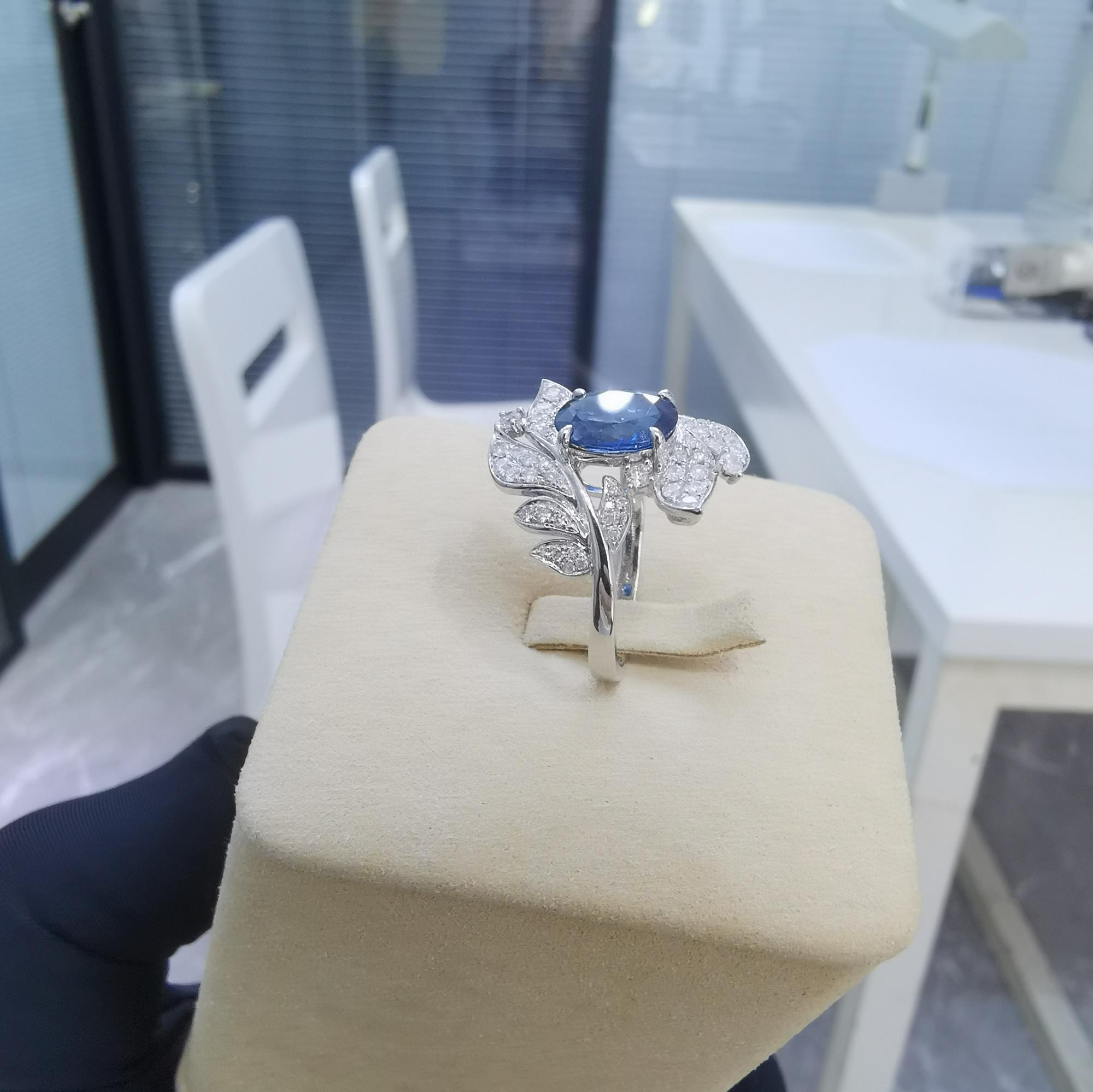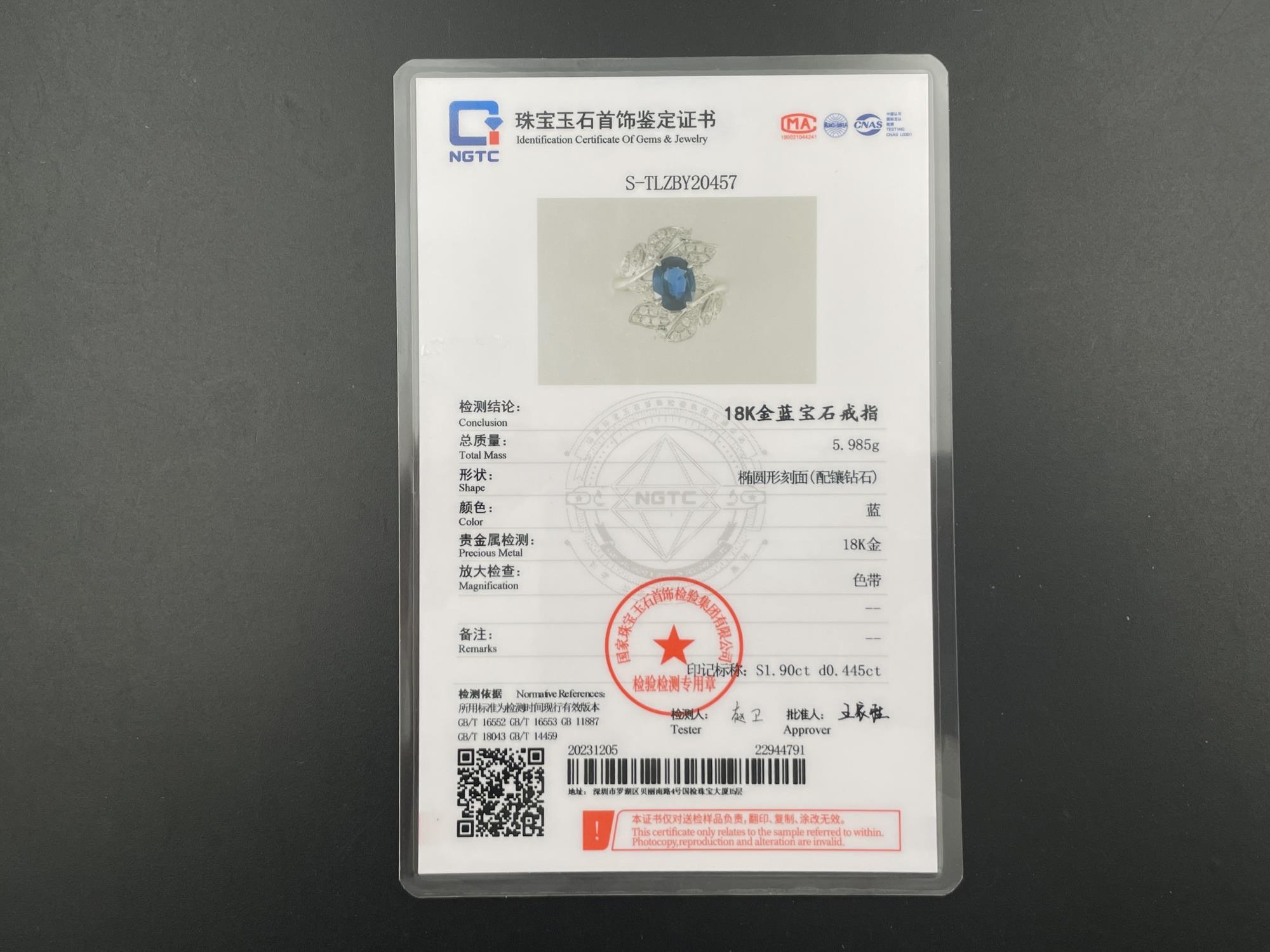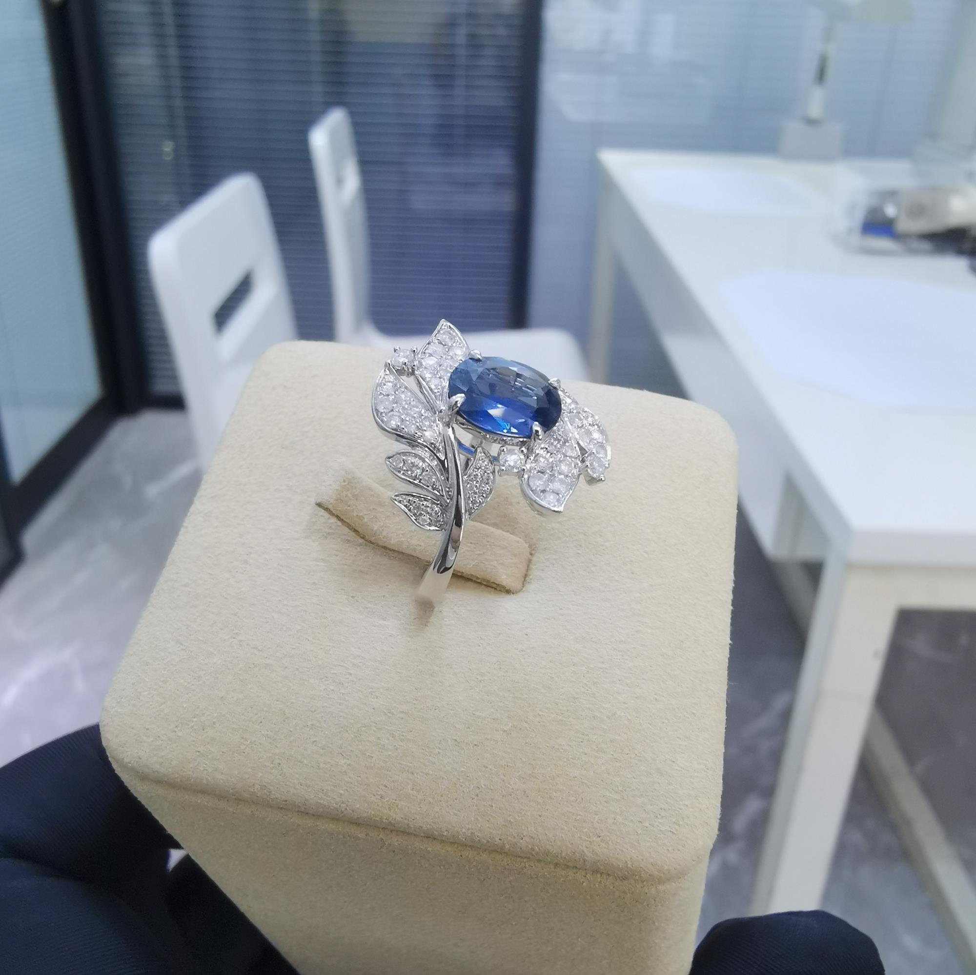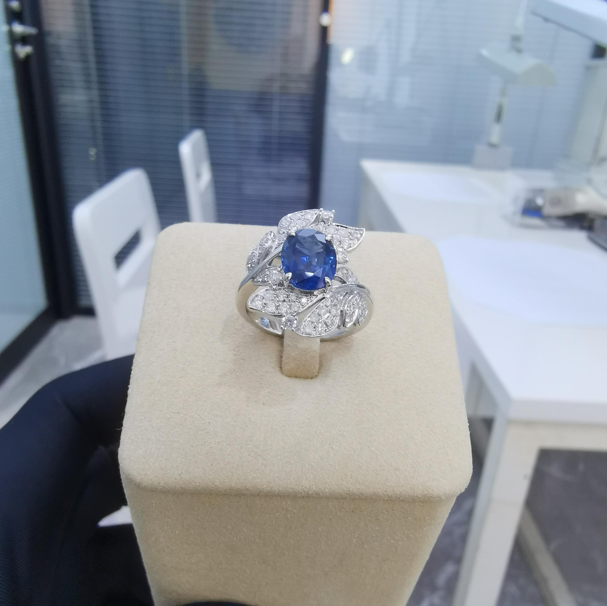 主石:椭圆形蓝宝石1.90克拉 副石:钻石0.445克拉