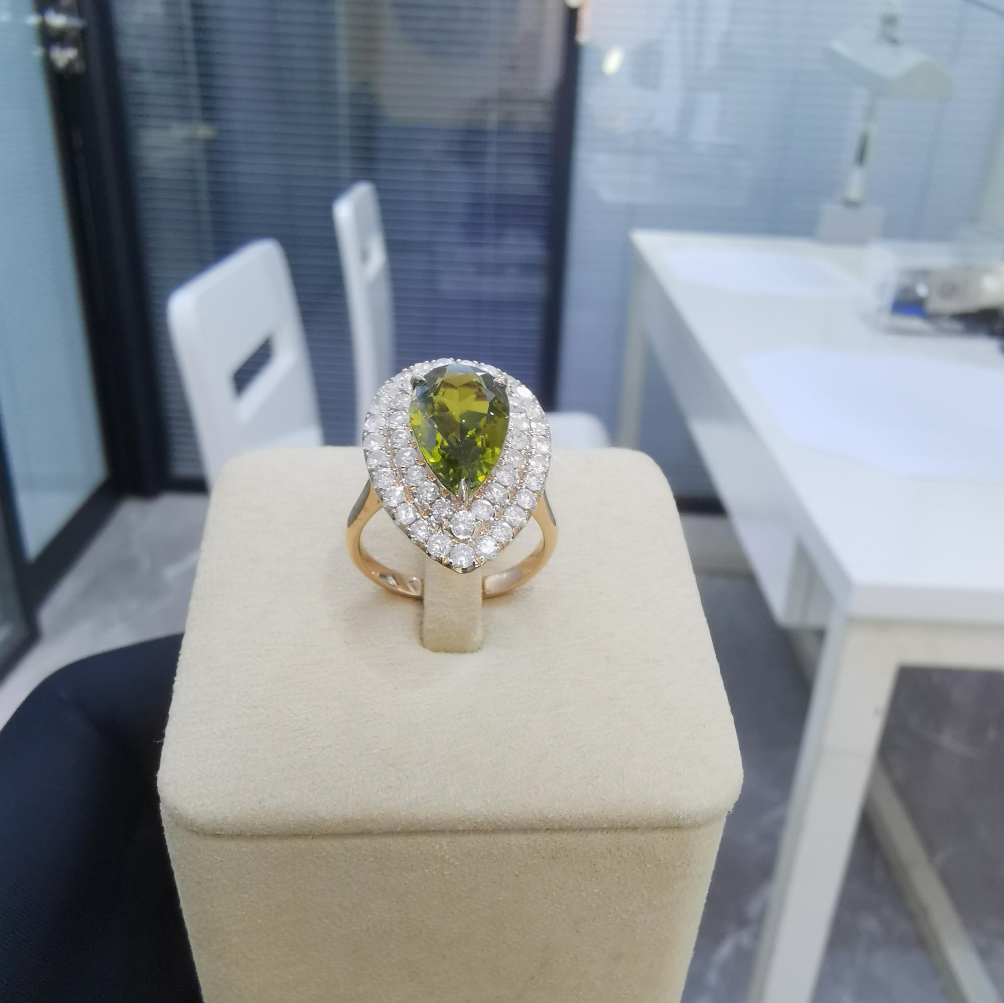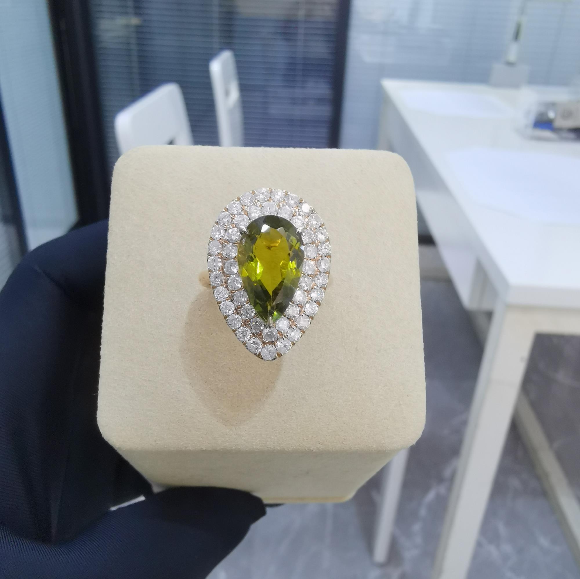 主石:水滴形碧玺3.208克拉 副石:钻石1.198克拉