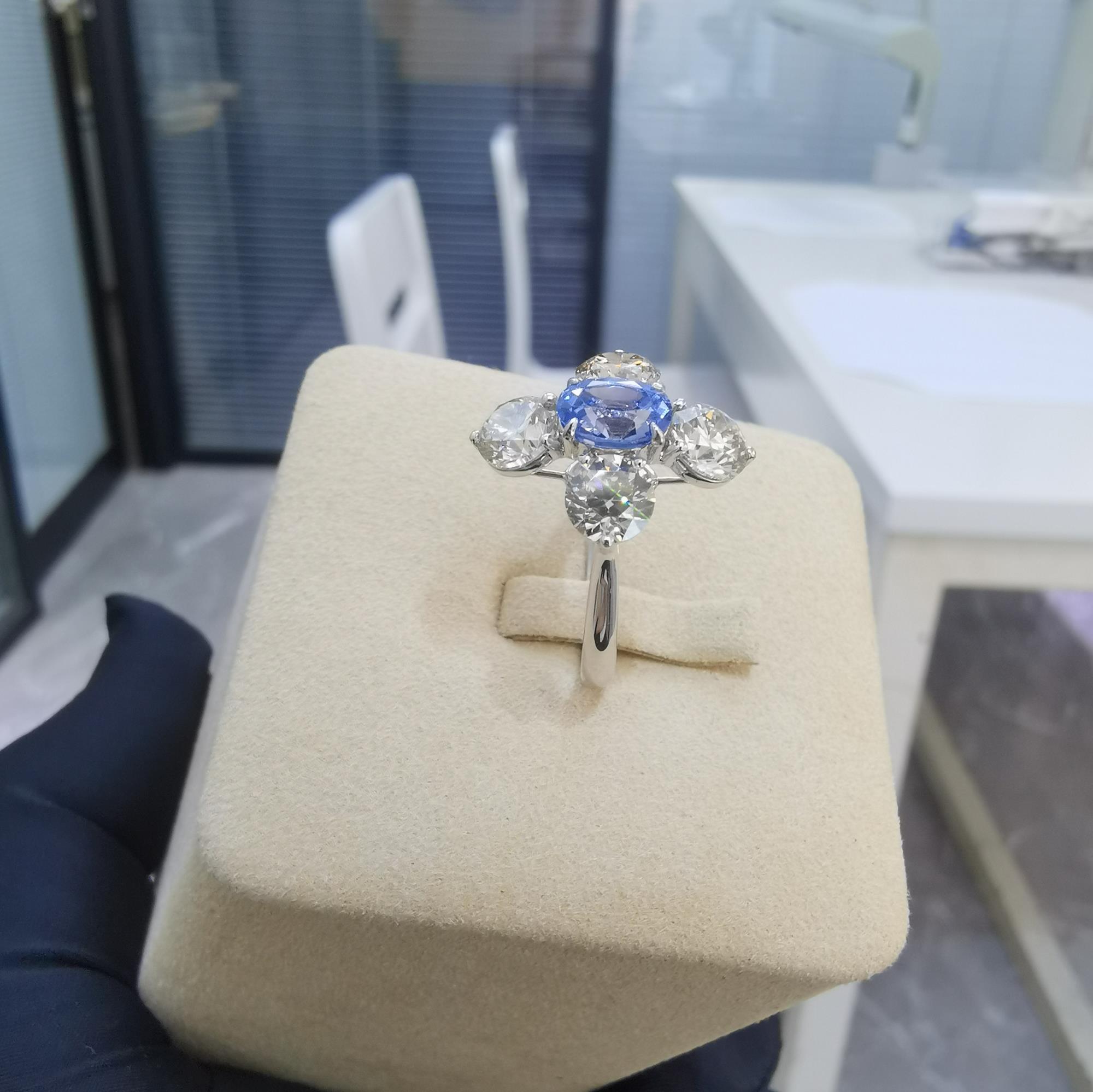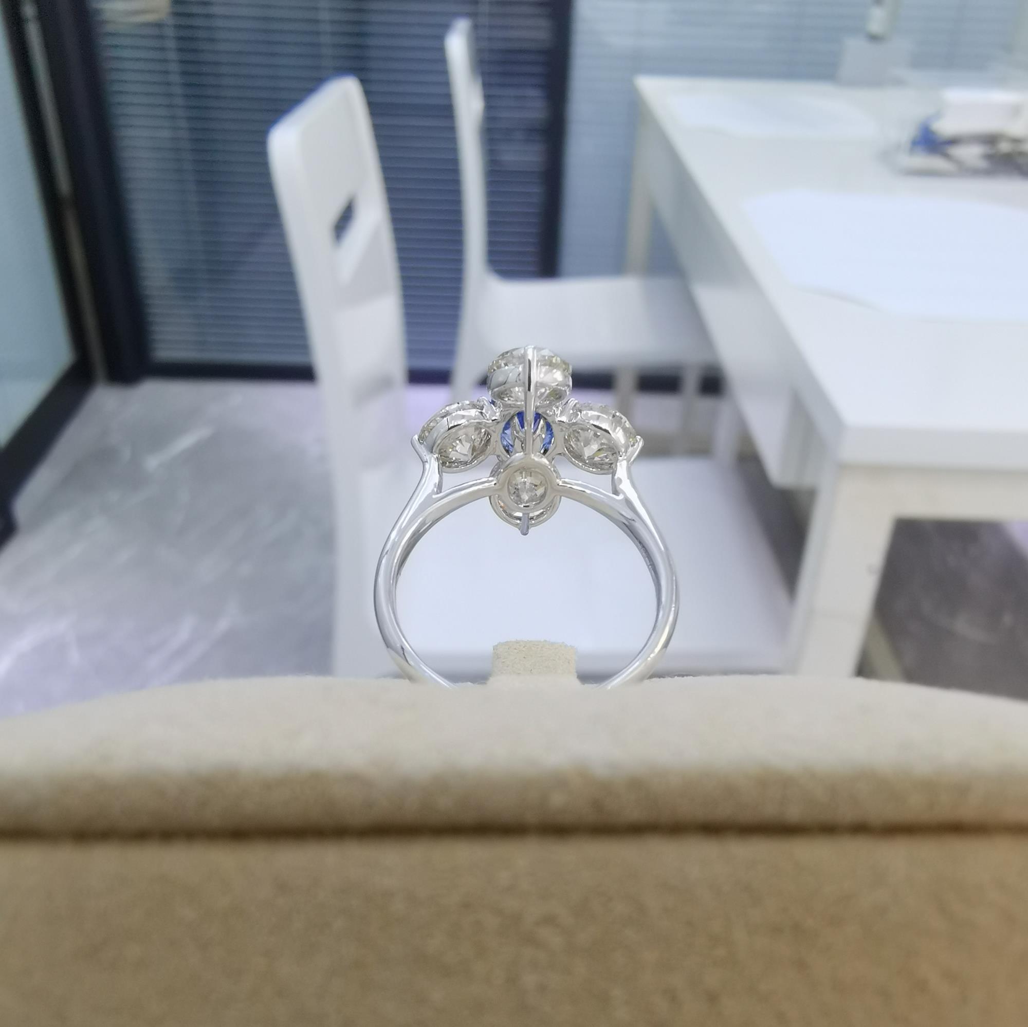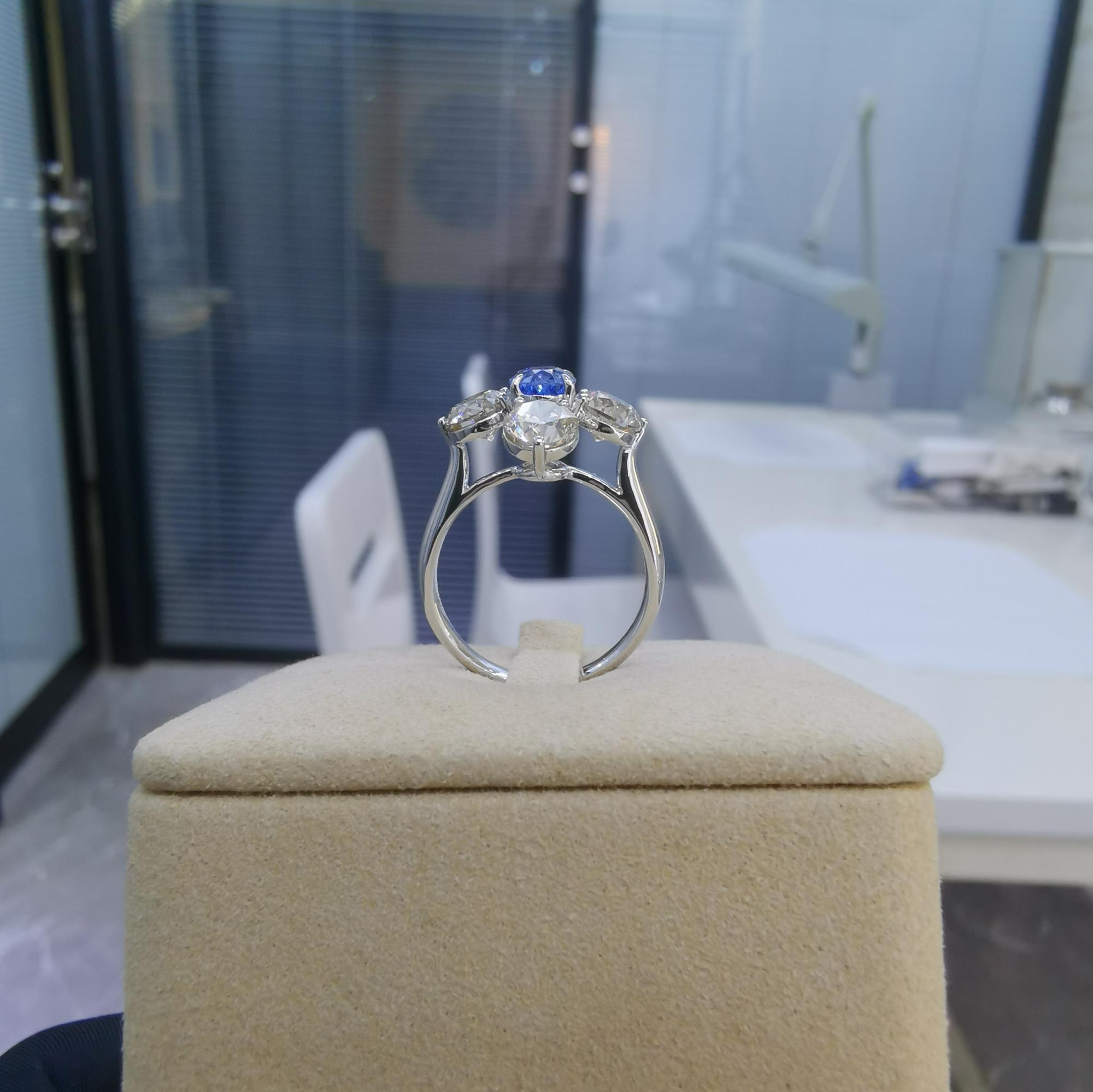 主石:椭圆形无烧蓝宝石1.306克拉 副石:钻石2.83克拉